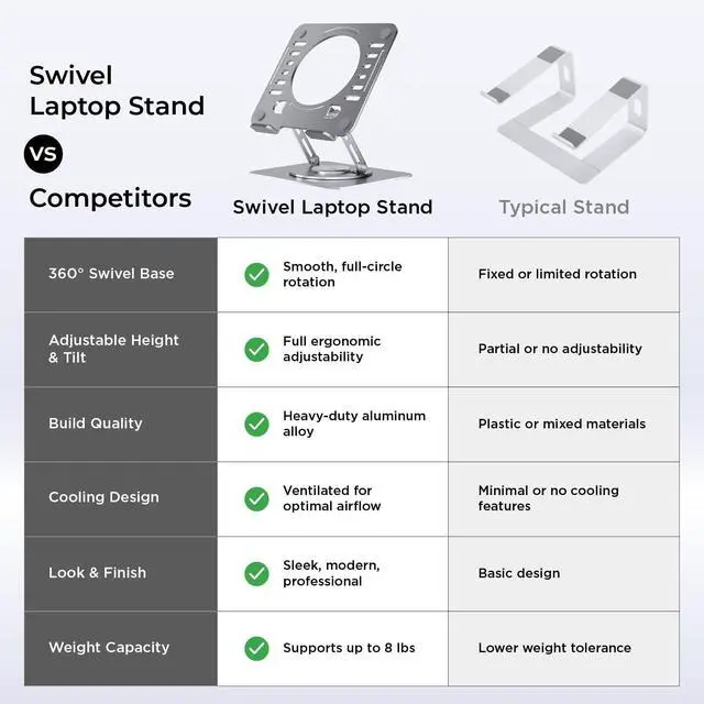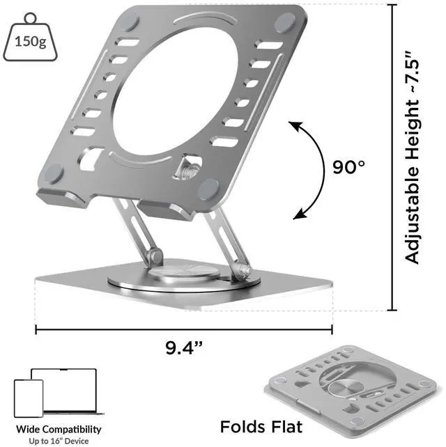^^ ROTATE: Enhance collaboration and flexibility with a computer laptop stand with 360 rotation, perfect for designers, presenters, and remote workers sharing screens effortlessly.