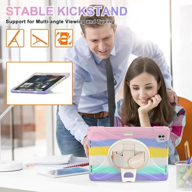 Rotating Hand Strap & Stand & pencil holder: This ipad pro 13 inch case provides stable support, 360deg swivel folding stand provides multiple angles for viewing/drawing/typing angles. The pen holder's storage function can effectively store the pen and prevent it from being lost. In addition, the stand can be folded up when not in us