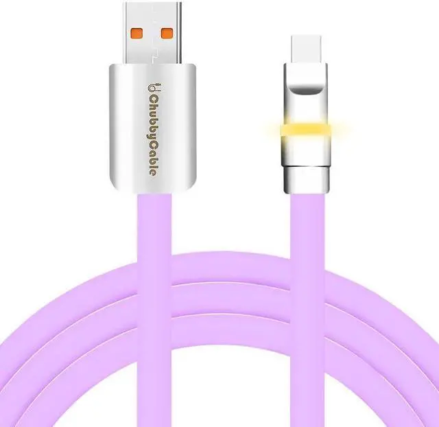 chubbycable Neon Chubby - Fast Charge Cable with Smart Light RGB Color Gradual Light Up LED USB Charging Cable, Light Purple, USB-A to Type-C, 9.8 FT