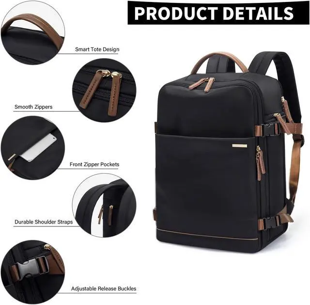 [(Durable & Comfortable)] - Made of high-quality water-resistant nylon/oxford fabric (not completely waterproof), the backpack is both durable and reinforced. The adjustable dual shoulder straps, along with the top-handle and backside luggage strap, provide an optimum comfo