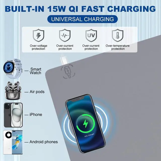 Wireless Charging: This mouse pad stands out from the rest with its integrated 15W wireless charging feature, compatible with a wide array of devices that enable wireless charging. It's more than just a mouse pad; it's a versatile charging companion! Please note that for optimal charging performance, a 9V 2A power adapter is recommended (not included)