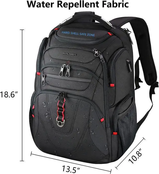 KROSER TSA Friendly Travel Laptop Backpack 17.3 inch XL Computer Backpack Water-Repellent College Daypack Business Backpack with RFID Pockets & USB Port for Men/Women-Black