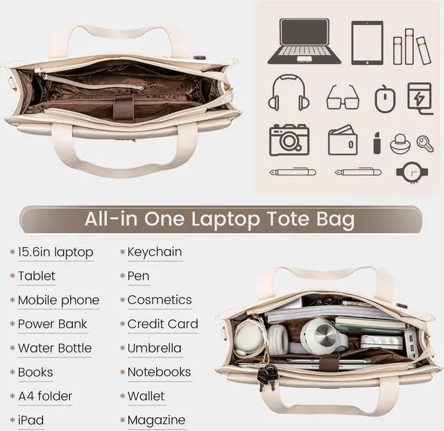 [(Ideal Organizer Work Tote)] :The work bags for women come with multi-compartments to meet all your work needs well. The laptop tote bag has an independent laptop compartment fits under 15.6 inch laptop and Ipad/tablet,a large main middle pocket designed for documents, book and gadgets,two small square pockets, two pen pockets,There has two side-pocket for power bank and water bottle inside.Stylish outer pocket with magnetic buckle,two zipper pockets and an anti-theft pocket,Easy access to items.