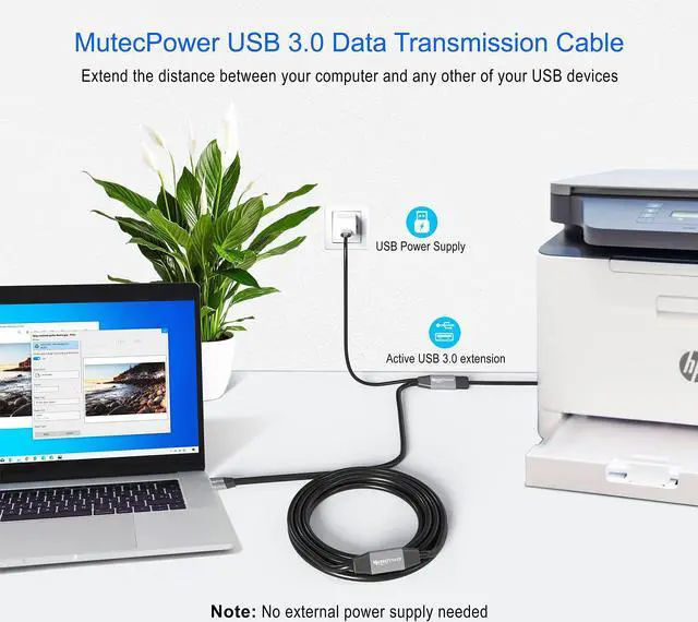 LONG USB ACTIVE CABLE WITH AMPLIFIERS (Chipset Boosters): Create a strong connection and stable data transfer with this newest 15 m USB 3.0 cable. Cable is manufactured with a built-in USB Power Supply for additional power (0.5m long), no more hassle with the extra 3.5mm AC 5V/2A Power Adapter. Plug and play, no driver required!