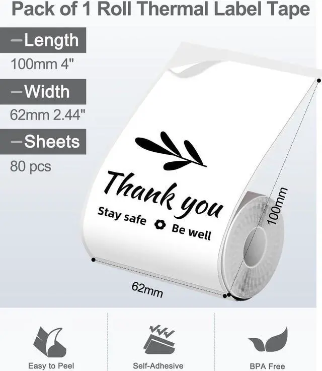 Thermal Label Printer- Never need the ink, toner, and ribbon again. This barcode label printer prints using thermal technology, meaning you only need to restock on labels, the thermal label maker come with 3 Rolls Labels(1 Roll 40x30mm label, 1 Roll 60x40mm label, 1 Roll 70x80mm label)(Attention: The label maker only support print 0.78''- 3.14'' width labels, can't print 4 x 6 shipping labels)