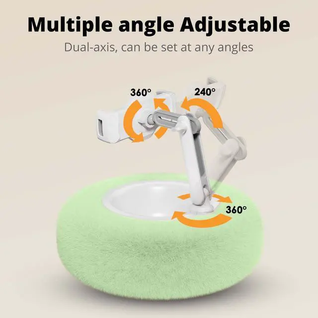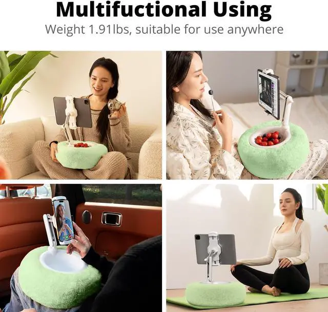 Lockable Arm, Height & Angle Adjustable - The lap pillow features a 4.7" thick design with a double-joint amputated arm measuring 5.5" and 3.5". The locking knob allows you to secure the angle and height of the phone arm, providing relief from eye, shoulder, and cervical spine fatigue, especially when using the device in a relaxed posture.