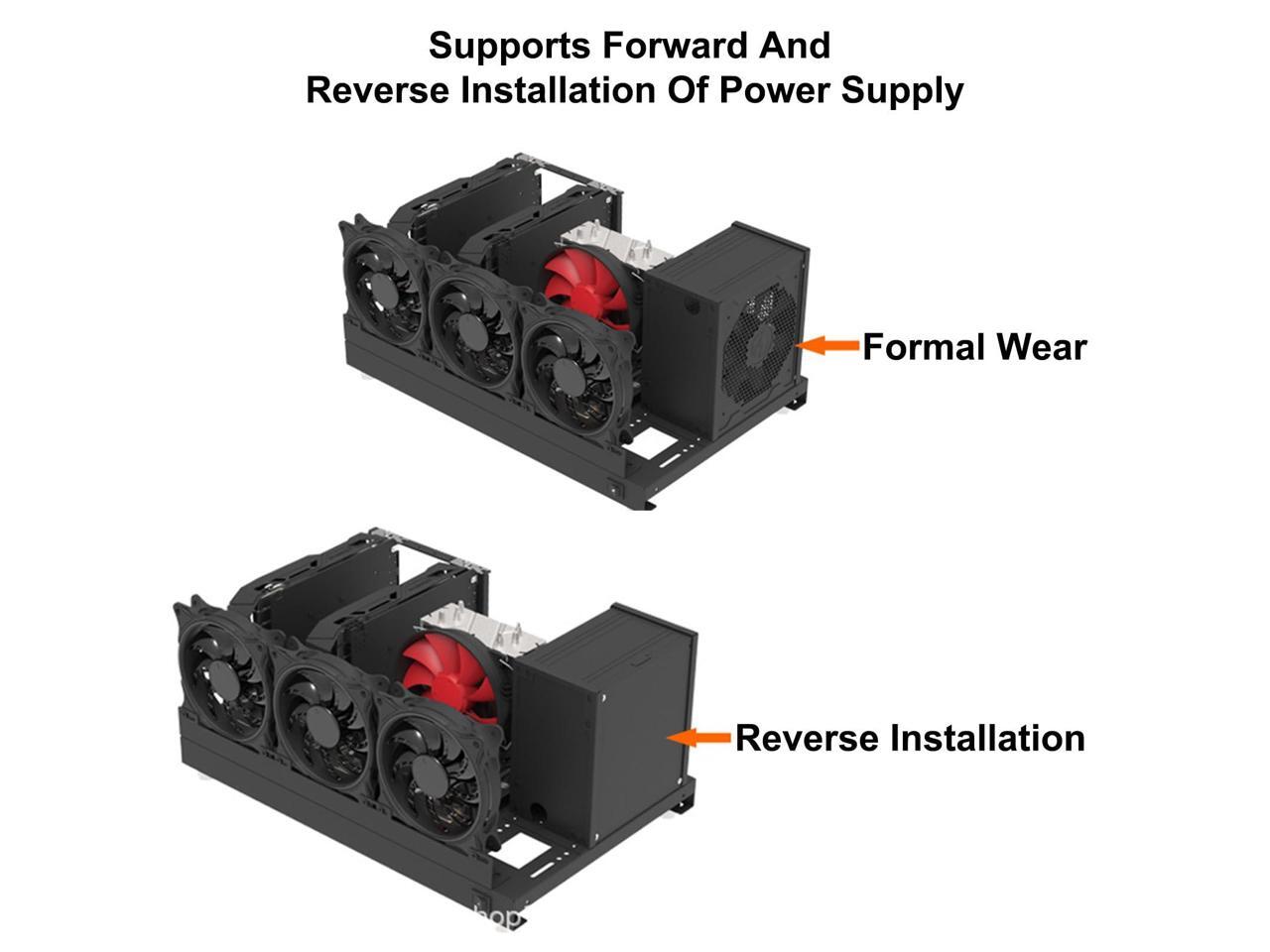 - Open Chassis: Open chassis provides better convenience in compatibility, cooling methods, and chassis maintenance, and supports unlimited graphics card sizes; This product can be placed horizontally or vertically, and you can freely assemble your chassis according to your needs