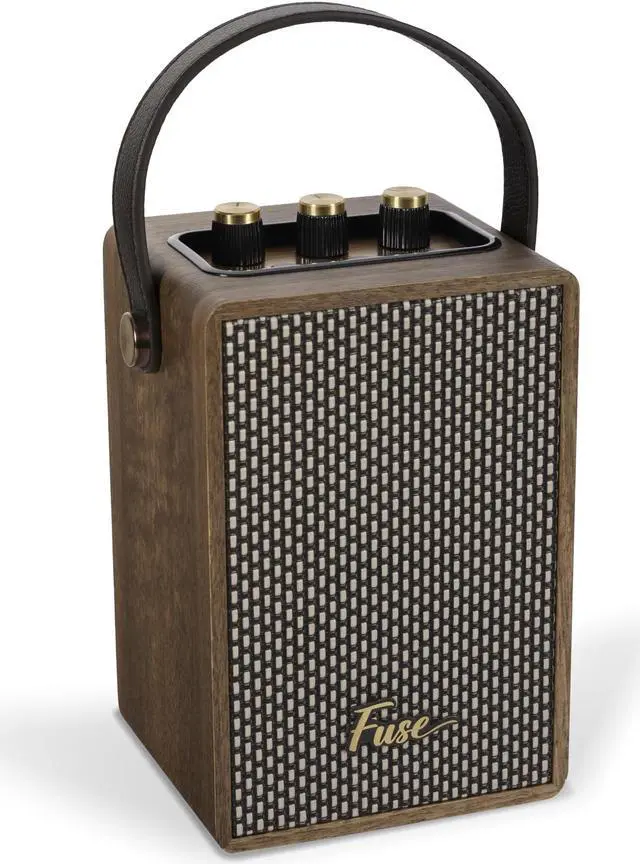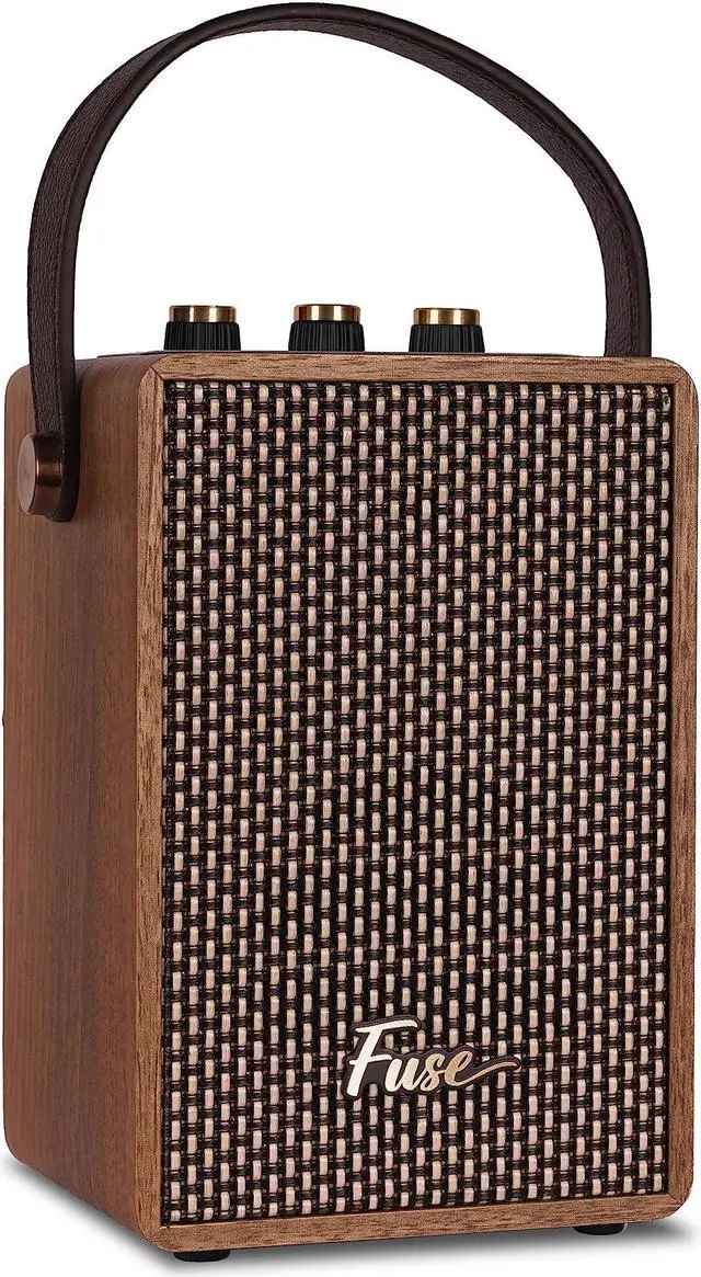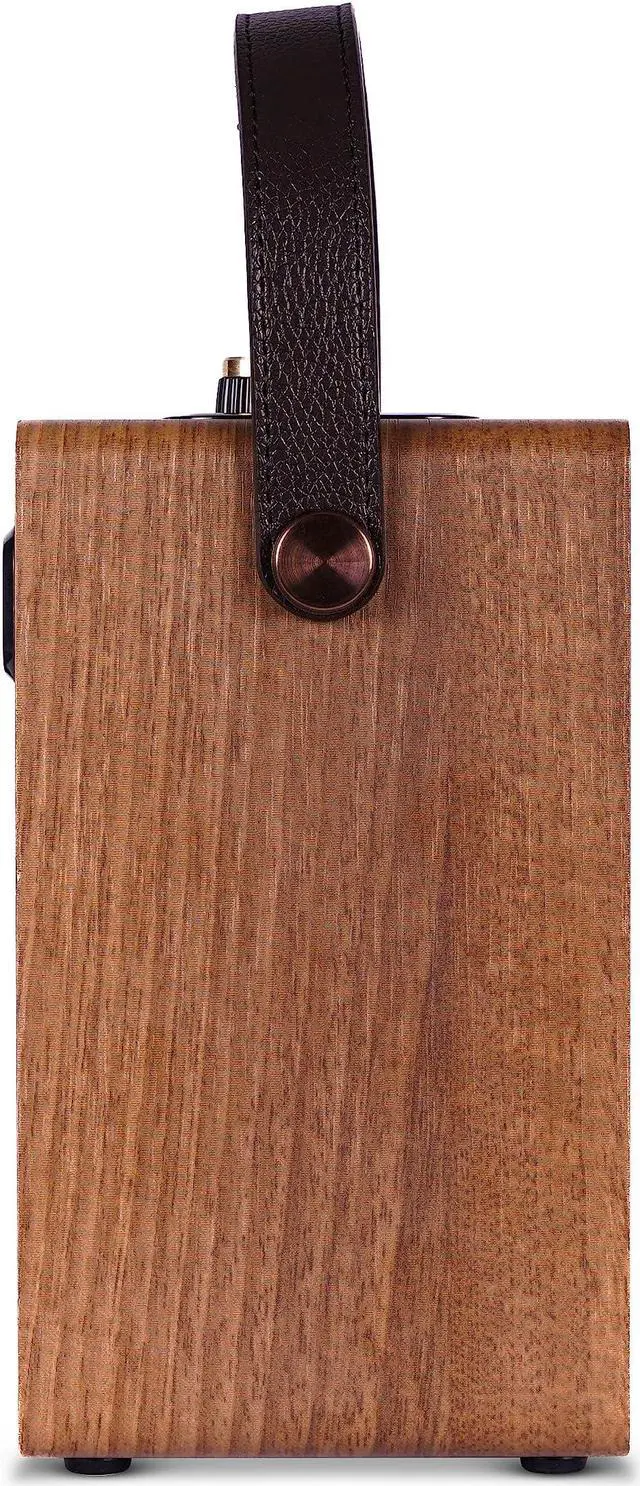 RETRO DESIGN: Showcasing meticulous attention to detail, the Fuse Andle boasts a sleek wood veneer and a convenient vegan leather handle. Explore the analog functions of the Andle, where classic knobs and buttons add a nostalgic touch. These carefully crafted features perfectly capture the timeless charm and nostalgic essence reminiscent of vintage speakers.