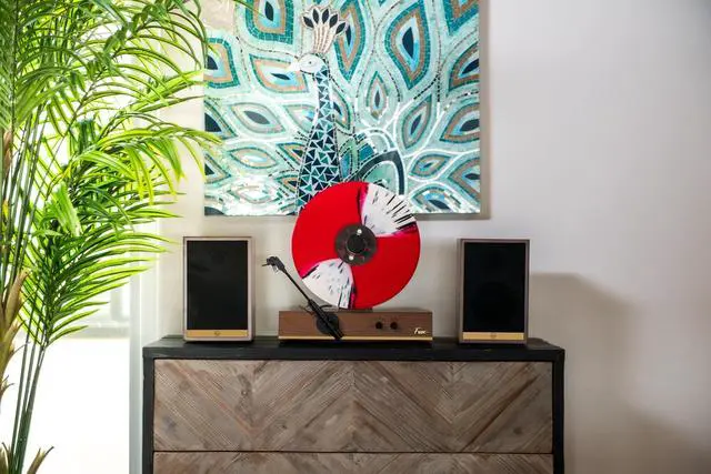 VINTAGE DESIGN: Fuse GLD has a vintage style reminiscent of nostalgic Mid Century Modern design with a modern twist. This unique vertical record player's orientation turns your favorite records into a focal point. There is an additional notch to display the album sleeve, so you can enjoy the vinyl design and album cover art at the same time in one bold statement piece.