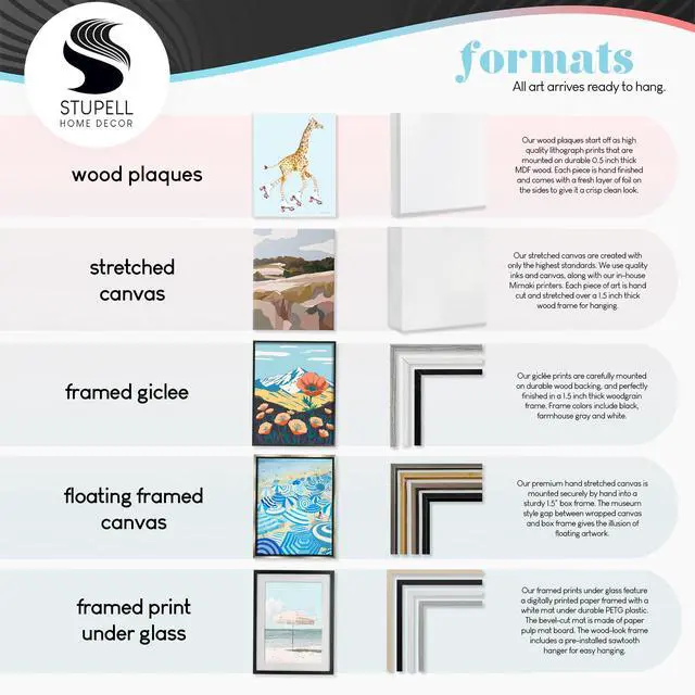 • We start with a giclee lithograph mounted on wood, and finish it with a texturized brush stroke finish. We didn't stop there though as we fit it within a 1.5 inch thick ebony wood grain frame to add depth and diminsion.