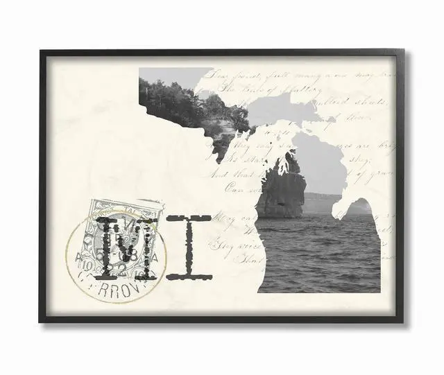 Stupell Industries Michigan Black and White Photograph on Cream Paper Postcard Framed Texturized Art, 24 x 30, Multi-Color