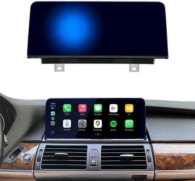 [VERTICAL SCREEN] Vertical screen style, Parallel with eye line of sight, that is safe and comfortable; easier to touch. Only suitable for BMW E70 E71 X5 X6 CIC original 4PIN LVDS system. ^^ [BLUE ANTI-GLARE] Multi-Point Capacitive Touch Screen, 10.25" Blue Anti-Glare HD IPS Display Screen, Resolution Up To 1920 * 720. Support Car's Knob to Control CarPlay or Android Auto Interface; Support Playing Music and Video Via USB. ^^ [OEM INFO] Support Factory Monitor Information Display; You Can Long Press Menu Button to Switch Between Factory OEM Interface and CarPlay Interface; Support Steering Wheel Button Function.