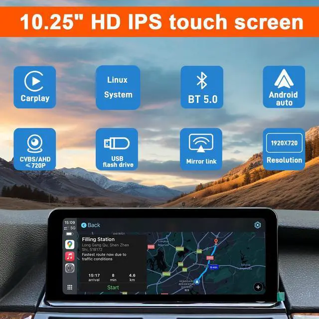 ^^ Screen Tech: With 1920x720 HD capacitive touch display, set OEM resolution according to screen size for OEM info display. Long-press menu button to switch between factory OEM interface and Carplay interface. Steering wheel button function supported.
