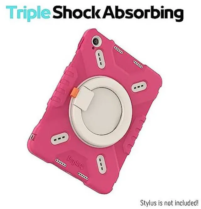 [(UNIQUE TRIPLE SHOCK-ABSORBING PROTECTION)] Compared to outdated designs, the unique triple shock-absorbing case is designed with an add-on bumper made of high-performing impact material that absorbs more shock energy between the tablet and the hard back case.
