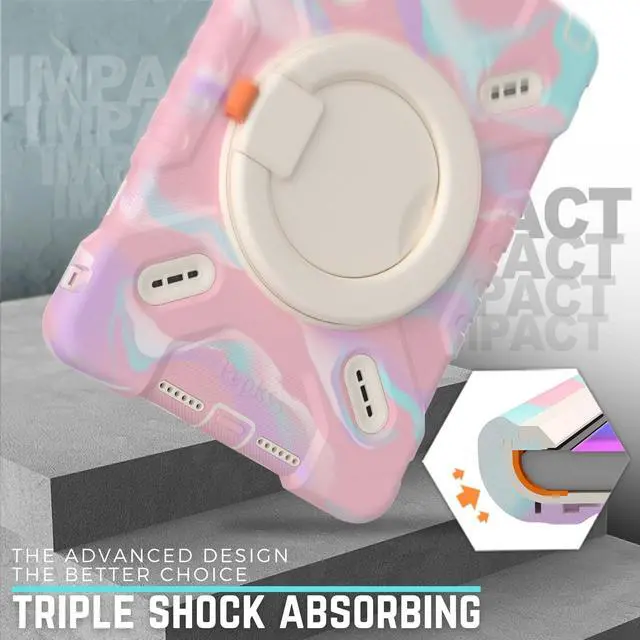 [(UNIQUE TRIPLE SHOCKPROOF PROTECTION)] Compared with the outdated design, the unique TRIPLE SHOCK-ABSORBING CASE designed with an add-on bumper made by high-performing impact material. Absorbs more shock energy between the tablet and the hard back case.