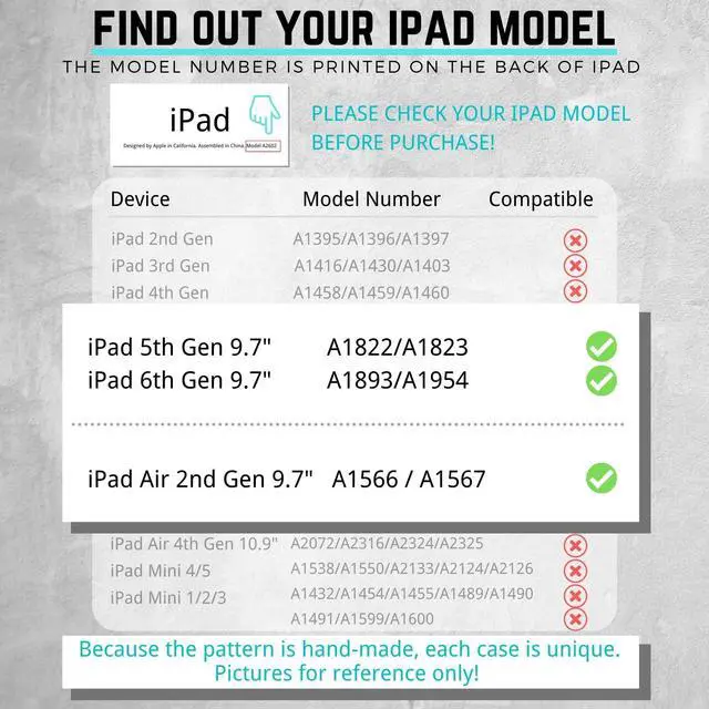 COMPATIBLE DEVICESCompatible with iPad 6th Generation 9.7-inch 2018 ( A1893 / A1954 ), iPad 5th Gen 9.7-inch 2017 ( A1822 / A1823 ), iPad Air 2 9.7-inch ( A1566 / A1567 ), WILL NOT FIT ANY OTHER MODEL! The Pencil is not included