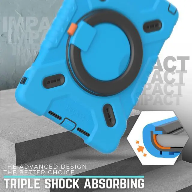UNIQUE TRIPLE SHOCKPROOF PROTECTIONCompared with the outdated design, the unique TRIPLE SHOCK-ABSORBING CASE designed with an add-on bumper made by high-performing impact material. Absorbs more shock energy between the tablet and the hard back case.