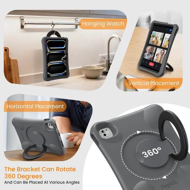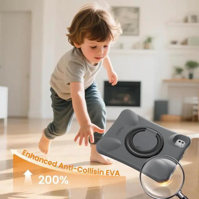 Perfect for 2024 M4 iPad Pro 11 inchSpecially designed for the latest 11-inch iPad Pro 4th generation (models A2836 and A2837). Accurately cut the camera, port and button to ensure that all functions work perfectly without removing the shell. ^^ Shockproof to protect childrenFor IPad case is made of high-quality shock-absorbing EVA material, which provides 360-degree all-round protection to prevent falling and collision. The reinforced corners provide additional impact resistance and prevent children from accidentally falling. ^^ 360-degree adjustable viewing bracketThe integrated bracket supports a variety of perspectives and can be carried by hand, which is convenient for travel.