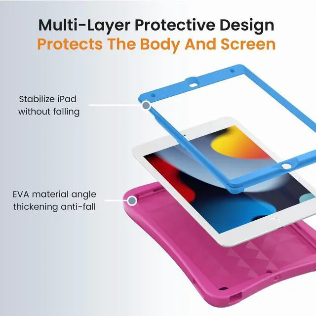 You can hold your iPad in your hand through the ring or hang it on the wall for viewing. ^^ Made of Non-toxic and Environmentally Friendly Materials Kids Tablet CaseFor ipad case 8th generation is suitable for children's skin and is made of EVA flexible foam with bright colors. It is loved by children while protecting the iPad and the health of children. ^^ Fashionable Design for iPad CaseFor ipad 10.2 inch case appearance uses curved arcs, which makes it comfortable to hold and conforms to the ergonomic grip angle.