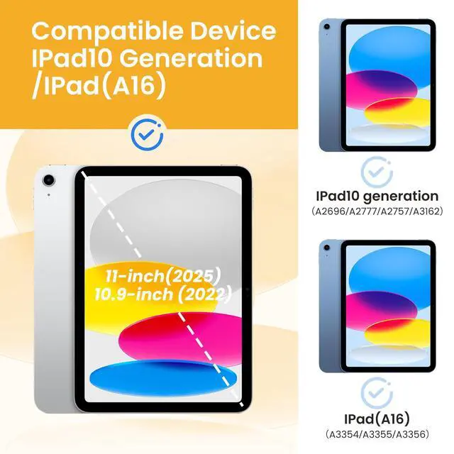 • Screen Protector Compatible with iPad CaseApplicable to iPad(A16)/ipad case 10th generation models, not suitable for other models. Please check your device model before purchasing.