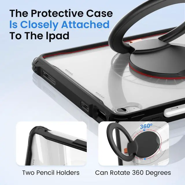 ^^ For iPad 11th Generation Has a Multi-Purpose StandIpad 10th generation has a ring stand that supports 360-degree rotation. It can be supported horizontally or vertically on the desktop, or hung on the wall for viewing. It can be carried in your hand when traveling. The ring is equipped with a pen holder, which brings convenience to your use. ^^ Triple Protect to Ipad A16 Case With Screen Protector11th gen case for ipad has triple protection, such as plastic bottom plate, silicone edge protection and embedded screen protection, which makes your Ipad light and thin and provides enough security during use.
