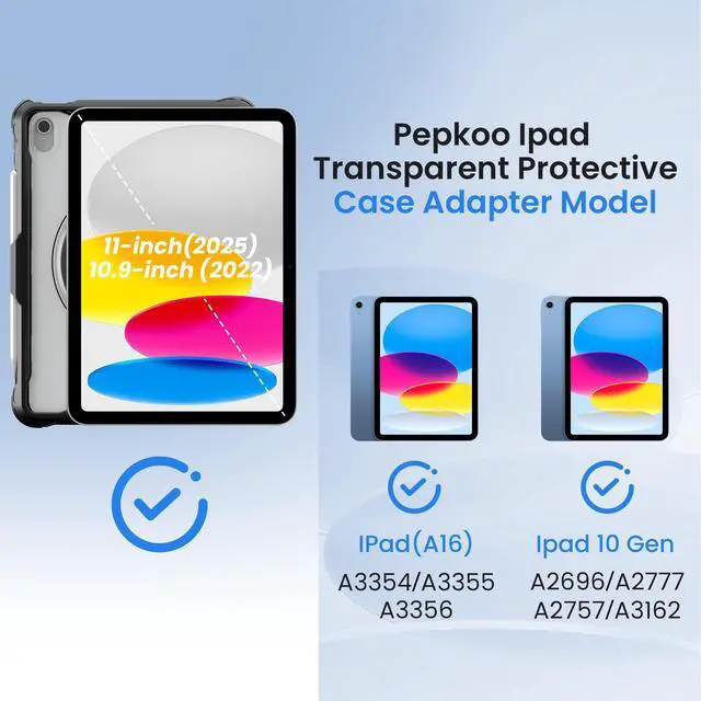 All-in-One for iPad 10th Generation Case This durable for ipad case 10th generation is equipped with a transparent shell to restore the background color of the iPad, which makes your iPad look simple and elegant, and at the same time, the edge is attached with soft silicone to protect your device from bumps, drops and daily wear and tear. Enjoy 360-degree all-round defense. ^^ Exquisitely Designed for Ipad 11th Generation Case This case for ipad11 inch is designed to accurately punch holes, providing precise cuts for buttons, speakers and charging ports, so that your equipment and case for ipad can fit perfectly.