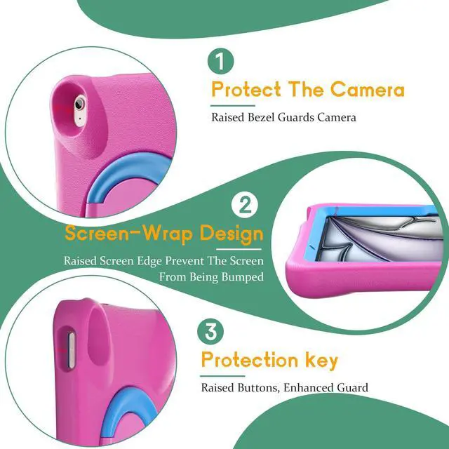 For IPad Case Designed for ChildrenFor ipad air case is made of EVA material with moderate hardness, which wraps the iPad in all directions and effectively cushions the impact of falling. The edges of 11 inch for ipad case are heightened and thickened, which fully protects the screen and the fuselage, and there is no fear that children will accidentally fall in daily use. ^^ 360 Rotating BracketPepkoo Case for iPad Air 11-Inch supports 360-degree free rotation and 180-degree opening and closing, and can realize various display modes such as horizontal screen and vertical screen.