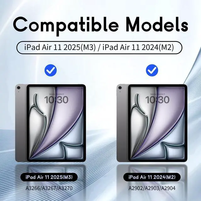 • Precise Adapt to iPad Air 11 Inch CasePerfect for ipad air case2025 A3266/A3267/A3270 and 2024 A2902/A2903/A2904.Precise opening design ensures the normal use of all functions such as charging and speaker.Not suitable for other products,please pay attention to screening when buying! Screen protector not included in the packaging.