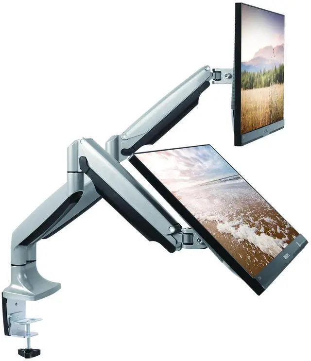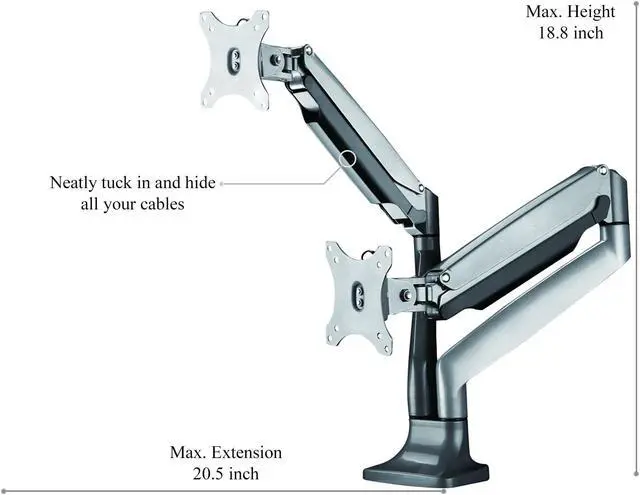 TechOrbits designed our SmartSWIVEL Dual Monitor Mount to easily move your screen anywhere you want to go! Our gas loaded springs make it easy to quickly move, spin, twist, or tilt your screen in any direction. We make it easy for you to take your presentation wherever you need it! Our universal mounting system can fit nearly all monitors 13" - 30" and under 19.8 Pounds. These stylish, floating arms attach to your desk with ease and provide your desk with elegant style.