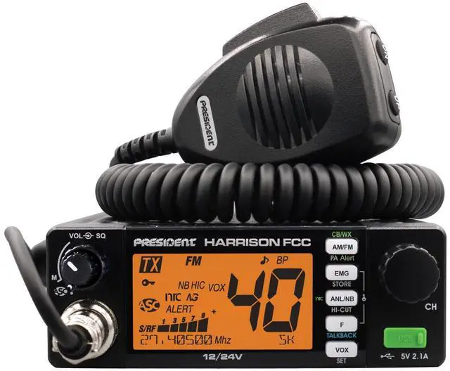 The new PRESIDENT ELECTRONICS HARRISON FCC AM/FM CB Radio's range gives you access to top performance transceiver equipment. The introduction of the HARRISON FCC adds a FIFTH AM/FM unit to the President product portfolio in the USA, along with the Thomas FCC, Randy II FCC, Bill II FCC and Walker III FCC AM/FM units. In addition to being the first FCC approved mobile AM/FM CB with CTCSS/DCS in the USA, this unit also offers the unique SCAN SKIP feature. With the use of up-to-date technology, which guarantees unprecedented quality, your PRESIDENT HARRISON FCC AM/FM is a new step in personal communication and is the surest choice for the most demanding of professional CB radio users.