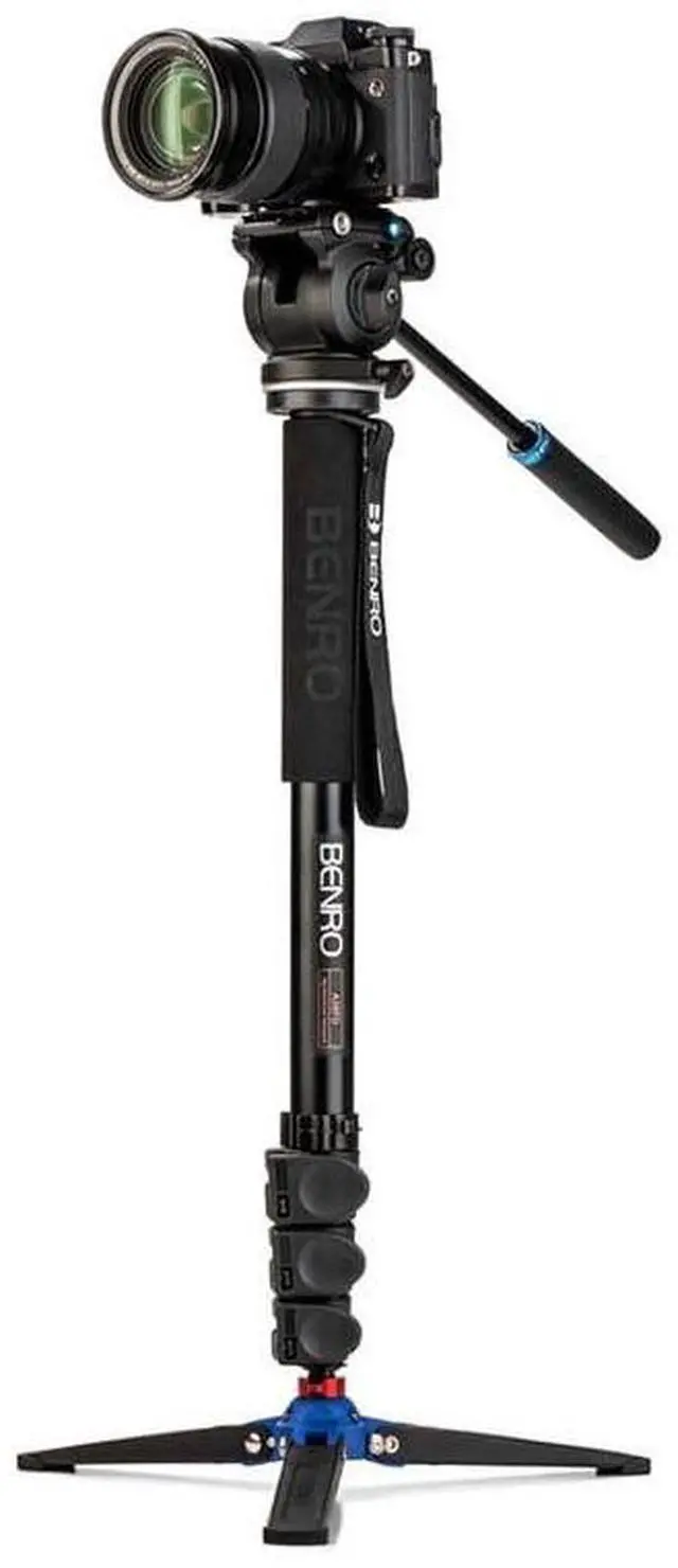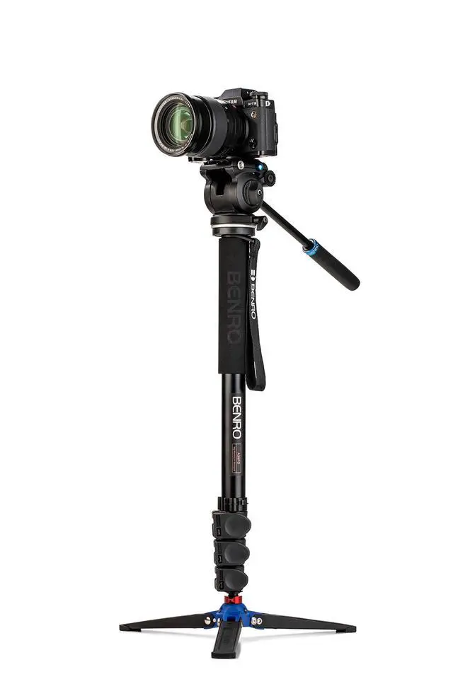 The Benro A38FDS2PRO is a travel-friendly flip lock video monopod provides a 5.5 lb. ( 2.5 kg) payload capacity ideal for small cameras and smartphones. The S2 PRO Video Monopod Kit features a 3-leg locking base with ball joint for smooth and stable shots along with reverse folding legs for compact travel. Made for small cameras and smartphones alike, the S2 PRO is a versatile flat base video head. The S2 PRO video head supports up to 5.5 lb/ 2.5 kg. Equipped with a 60mm flat base with a 3/8"-16 thread, the S2 PRO is a versatile creative tool allowing you to mount the head separately on sliders, jibs, or monopods.