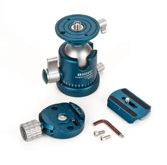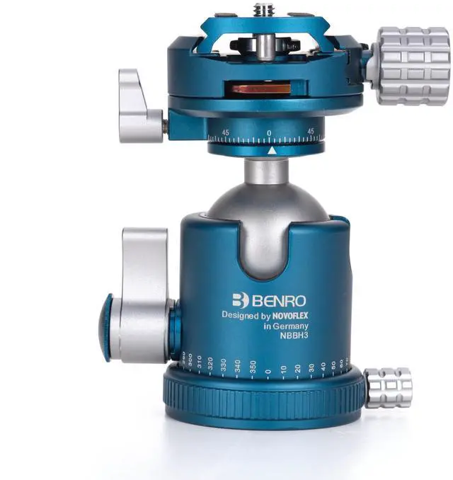Professional Dual-Pan Design The Benro NBBH3 Ball Head features independent 360 panning at both the base and clamp, allowing precise panoramic and multi-angle composition control. ^^ Massive Load Capacity Supports up to 66 lbs while maintaining a low-profile, compact design, ideal for heavy professional DSLR, mirrorless, or medium-format camera setups. ^^ Arca-Swiss Compatibility Equipped with an Arca-Swiss style quick release plate and safety stop screws for fast, secure camera mounting and smooth workflow transitions. ^^ Smooth Friction & Lock Control Dual independent adjustment knobs provide precise tension control and solid locking strength for exact framing and fluid repositioning.