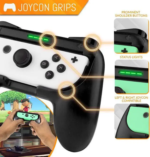 ULTIMATE PARTY PACK Featuring 17 accessories, the Orzly PartyPack bundle is perfect for group fun playing on the Switch, with 4 of each of all the accessories you need to enhance your gaming experience with friends & family, & a great drawstring bag to conveniently & safely keep everything together