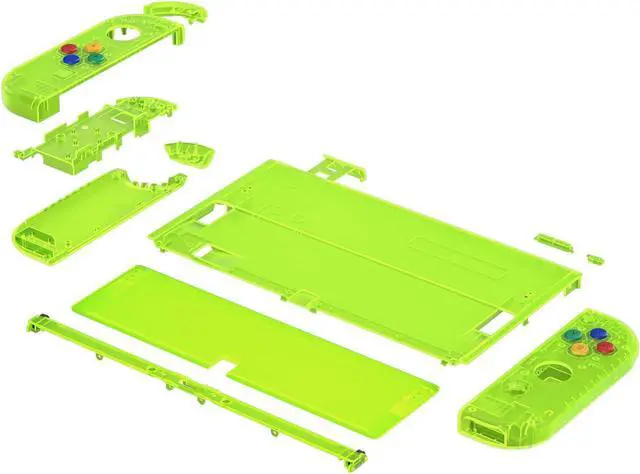 eXtremeRate DIY Full Set Shell for Nintendo Switch OLED, Replacement Console Back Plate & Kickstand, Custom NS Controller Housing with Full Set Buttons for Nintendo Switch OLED - Clear Lime Green