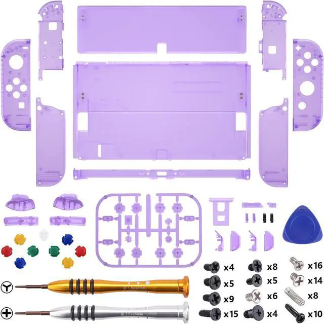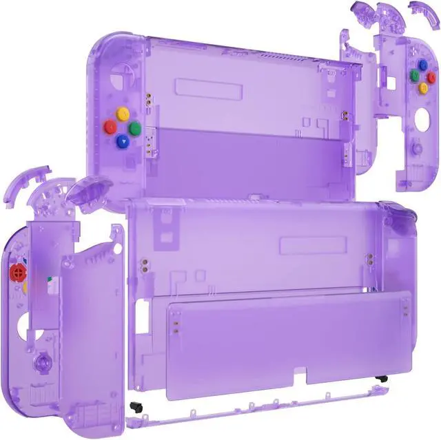 eXtremeRate DIY Full Set Shell for Nintendo Switch OLED, Replacement Console Back Plate & Kickstand, Custom NS Controller Housing with Full Set Buttons for Nintendo Switch OLED - Clear Atomic Purple
