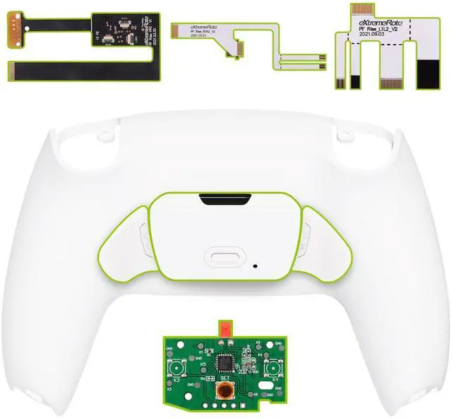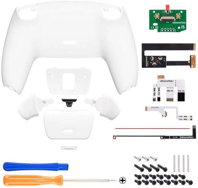 Turn your existing controller for PS5 into a professional eSport elite controller. Only compatible with PS5 Controller BDM-010 & BDM-020 (Check how to recognize your BDM model on YouTube by searching "extremerate check bdm for ps5 controller" or "fiE4BWSlBRI" before purchase), NOT fit for PS5 BDM-030 BDM-040 BDM-050 and other controller ^^ 2 Ergonomic programable back buttons attachment added ^^ Maximum 15 buttons can be assigned to the back buttons ^^ High hands-on skills required, soldering optional; Get the installation video guide by searching "eXtremeRate RISE 2.0 Remap Kit for PS5" or "QzSqI_qsKXM" on YouTube ^^ Compatible with PS5 controller eXtrmeRate LED Kit, Clicky Hair Trigger Kit, Face Clicky Kit, all replacement Buttons and Shells.