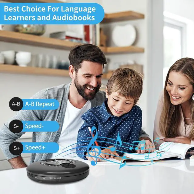 ^^ MULTIFUNCTIONAL MUSIC PLAYERCD player with headphones also has the function of A-B repeating, last memory, adjusting the playback speed, volume control, programming play and DIR-MP3 playback. It is the best choice for children to learn languages, sing and play audiobooks. ^^ CD PLAYER FOR CARNot only can be used as an external car CD player, but also can be connected to your car stereo or other external speakers via AUX 3.5 mm cable. This rechargeable cd player with skip protection to ensure uninterrupted playing even when driving or exercising.