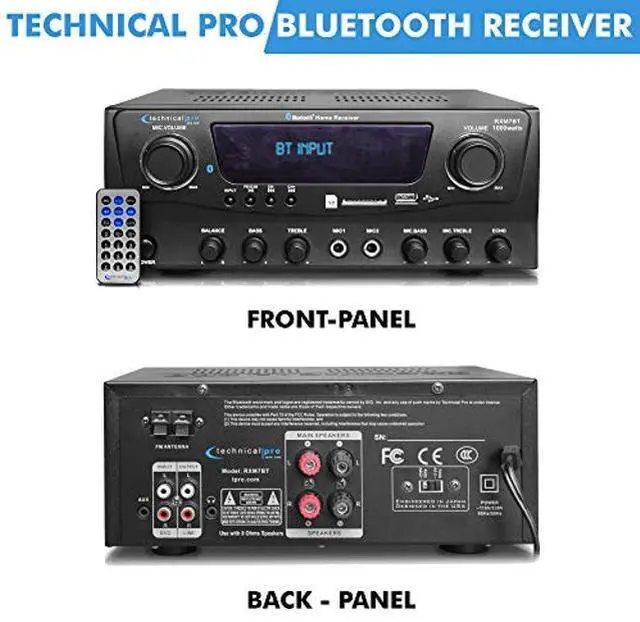 Technical Pro RXM7BT 1000w Home Receiver Bluetooth Amplifier Amp w/USB/SD/FM