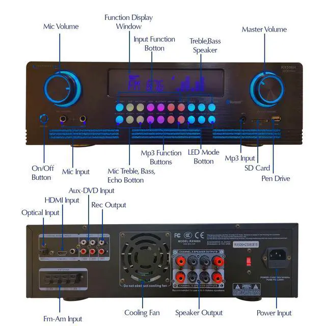 : Immerse yourself in a superior audio experience with our 2000W home theater system. This sleek kit includes a Bluetooth amplifier receiver, 175W in-ceiling speaker, and hassle-free gauge wire for seamless installation. With versatile connectivity options (RCA, SD CARD, USB, AUX) built-in FM radio, entertainment possibilities are limitless.