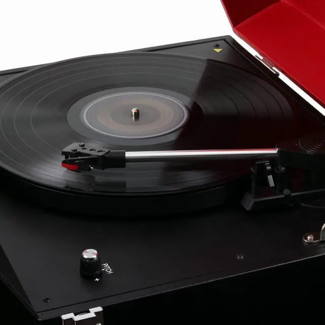 Product Features3 Speed Belt Drive Turntable with 420mm Full Size PlatterBluetooth ReceiverBluetooth ReceiverCD PlayerAnalog FM RadioPlastic tone arm with ceramic cartridgeWooden MDF cabinet with PU wrappingWooden top lid with hinge/PU wrapping2 digit LED display for