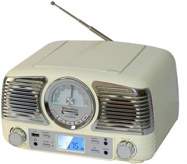 TechPlay QT62BT, Retro Design Compact Stereo CD, with AM/FM Rotary knob, Wireless Bluetooth Reception and USB Port. with AUX in and Headphone Jack (Antique Yellow)