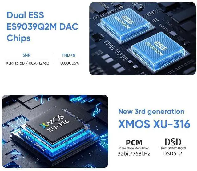 Dual ES9039Q2M DAC Chips: DO100 Pro adopts dual ES9039Q2M decoding chips and XMOS XU316 chips to provide excellent audio performance. USB input supports DSD512 and PCM32bit/768kHz audio formats, ensuring you can enjoy an extremely clear and authentic music experience ^^ Multipurpose