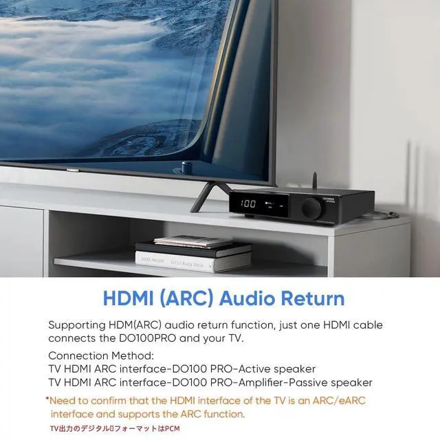 HDMI ARC Function: The DO100 PRO features an HDMI ARC input for high-quality audio transmission with compatible TV devices. *To use the HDMI ARC function, you need a TV with HDMI ARC function. During the operation, confirm that the audio output format is PCM and the TV output mode is set correctly ^^