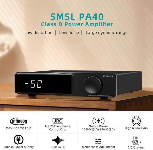 Classic Appearance & Easy Operation: SMSL PA40 adopt with classic float window exterior design. Equipped with a full-featured remote control to enhance convenience