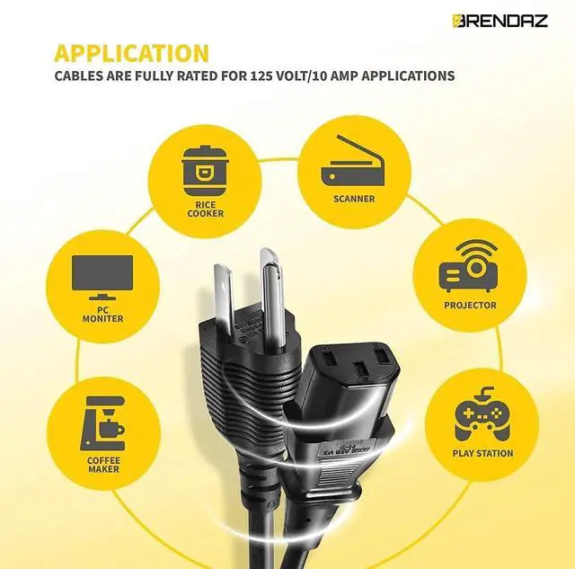 ^^ DURABLE: This 18AWG AC Power cord is a powerful and safe for power supply, it is durable and strong for daily use, Its UL Listed and CSA approved, fully rated for 125 volts/ 10amp applications. Pair with a computer and monitor to have matching cable lengths for a tidy installation.