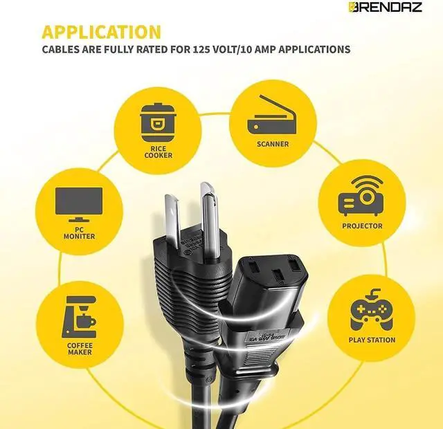 ^^ DURABLE: This 18AWG AC Power cord is a powerful and safe for power supply, it is durable and strong for daily use, Its UL Listed and CSA approved, fully rated for 125 volts/ 10amp applications. Pair with a computer and monitor to have matching cable lengths for a tidy installation.