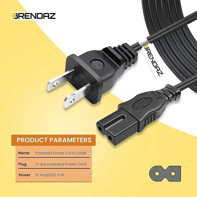 ^^ VERSATILE APPLICATIONS: This Polarized 2 prong power cord is designed for TVs PlayStation PS2 PS1, laptops, VCRs, DVD players, and other devices requiring a 2-slot polarized cord, offering wide compatibility across various devices.