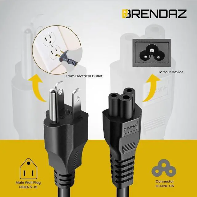 Universal Compatibility: Replacement 3-prong power cord for a wide range of devices including computers, monitors, and TVs, compatible with top brands such as Dell, IBM, HP, Asus, Sony, Samsung, Toshiba, Lenovo, Acer, LG HDTV, and Epson printers.
