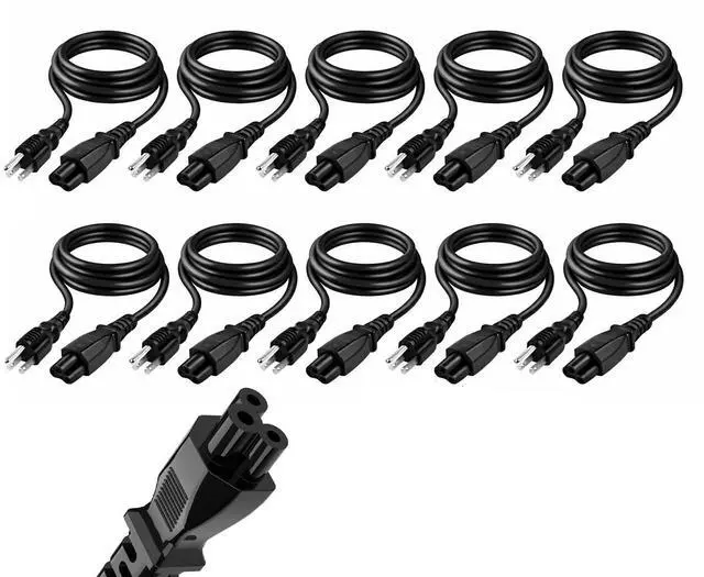 (10-Pack) 3 Prong Power Cord 15ft. Replacement AC Power Cable for TV, Monitors, Chargers, Computers, Compatble with Dell, HP, Toshiba, Lenovo, Acer, LG TV's,- NEMA 5-15P to C5 (15-Feet)