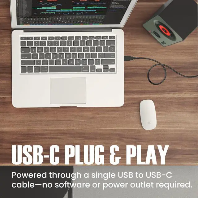 Clear, Powerful Stereo Sound Experience crisp, room-filling audio from dual 2" full-range drivers that deliver 6W RMS / 12W peak power. Perfect for everyday listeningwhether youre working, studying, or unwinding with your favorite playlists or videos. ^^ Plug-and-Play Simplicity Set up in seconds with USB-C plug & play for PC. No drivers, no hasslejust connect and enjoy. Includes a 1m USB-C cable and 3.5 mm AUX input for quick, flexible listening across devices. ^^ Compact Size, Clean Design Designed to fit any desk setup, these PC speakers feature a sleek matte black or white finish, simple LED indicator, and intuitive power and volume controls.